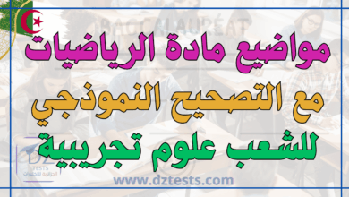 مواضيع البكالوريا مادة الرياضيات مع التصحيح للشعب علوم تجريبية