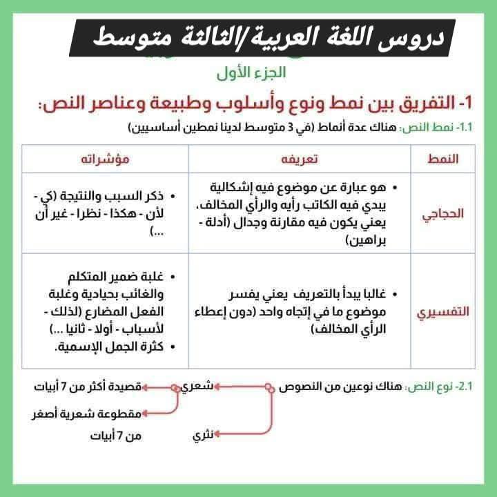 فهرس دروس الفصل الاول للغة العربية السنة الثالثة متوسط